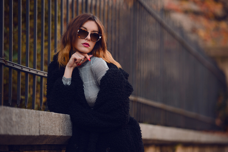 MISSGUIDED COAT & DRESS, FENDI SUNGLASSES - OPTIKA SMOLE, REBECCA MINKOFF BAG, LANGAEBLE EARRING